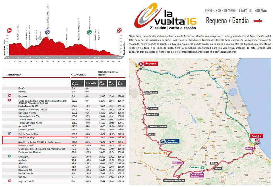 La etapa 18 comienza en Requena y finaliza en Gandía.